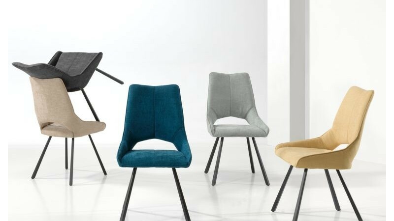 La chaise GABRIELLE est disponible en six coloris : anthracite, beige, bleu, jaune, rouge et vert.