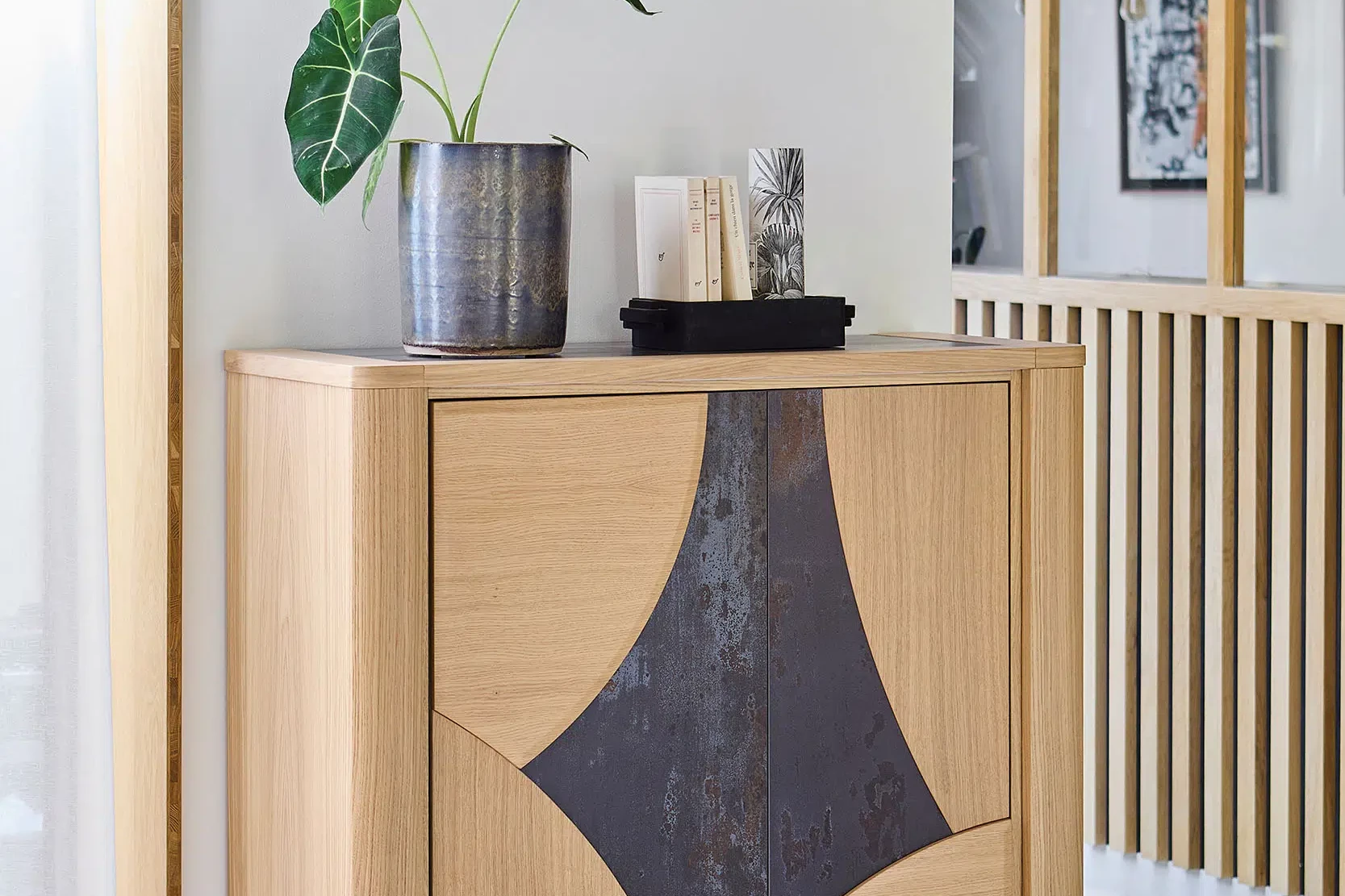 Cette collection de meubles incarne l’élégance du design contemporain à travers une alliance subtile de lignes épurées et de matières d’exception.