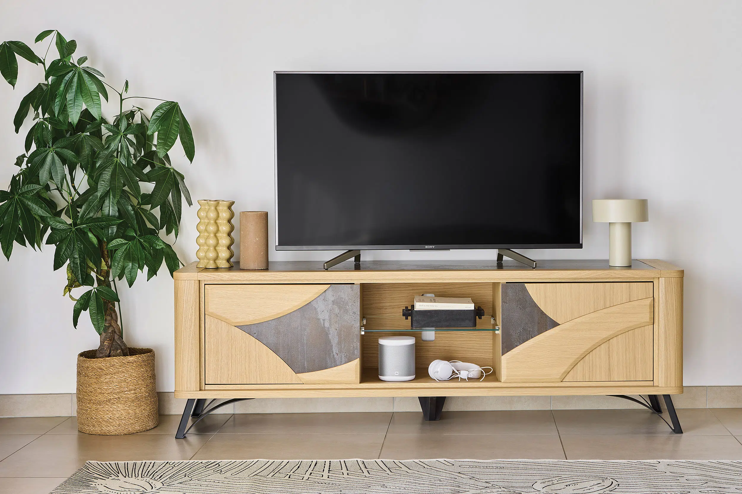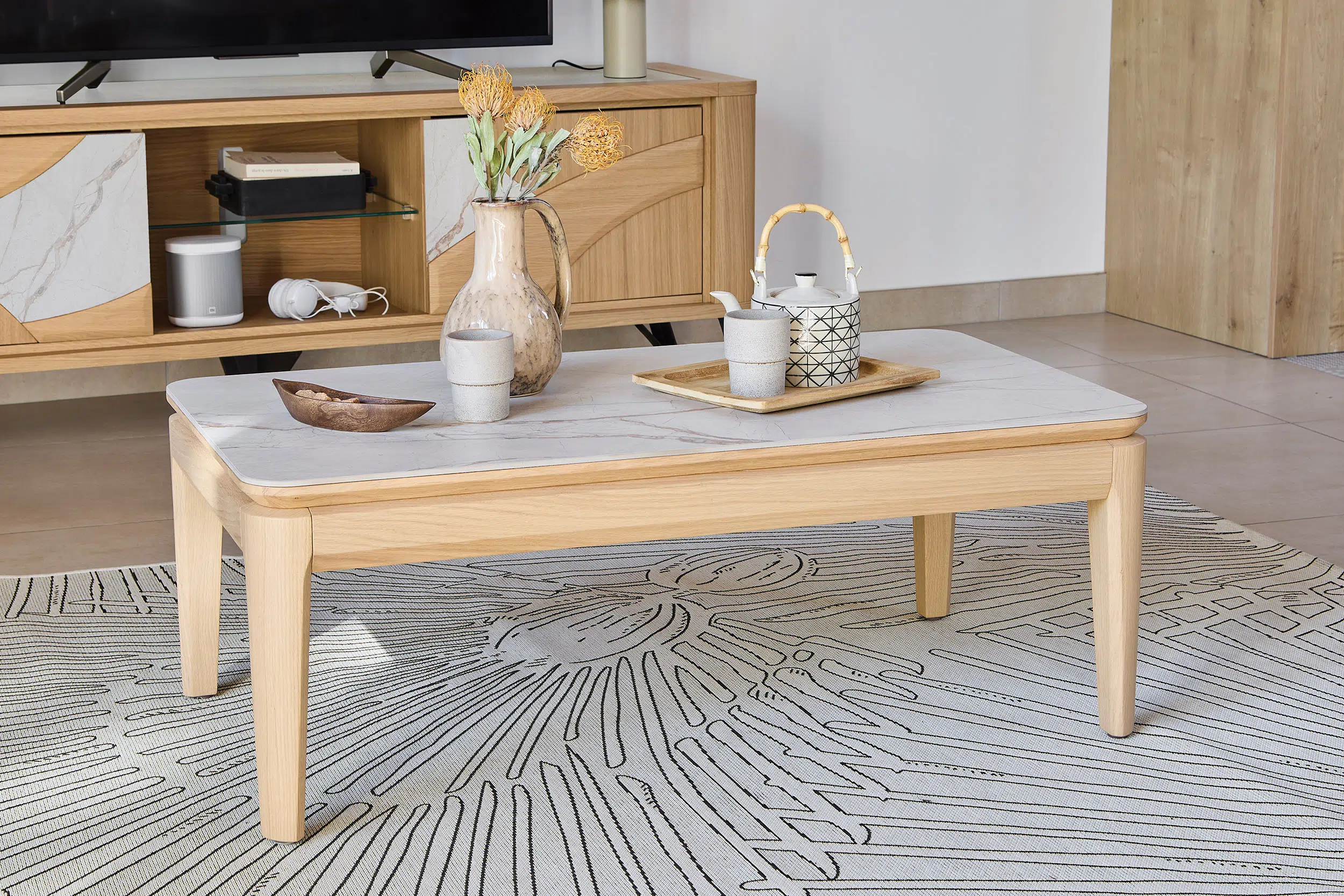 Découvrez la table repas Riviera, le meuble TV Riviera, et la table de salon pour compléter la collection.