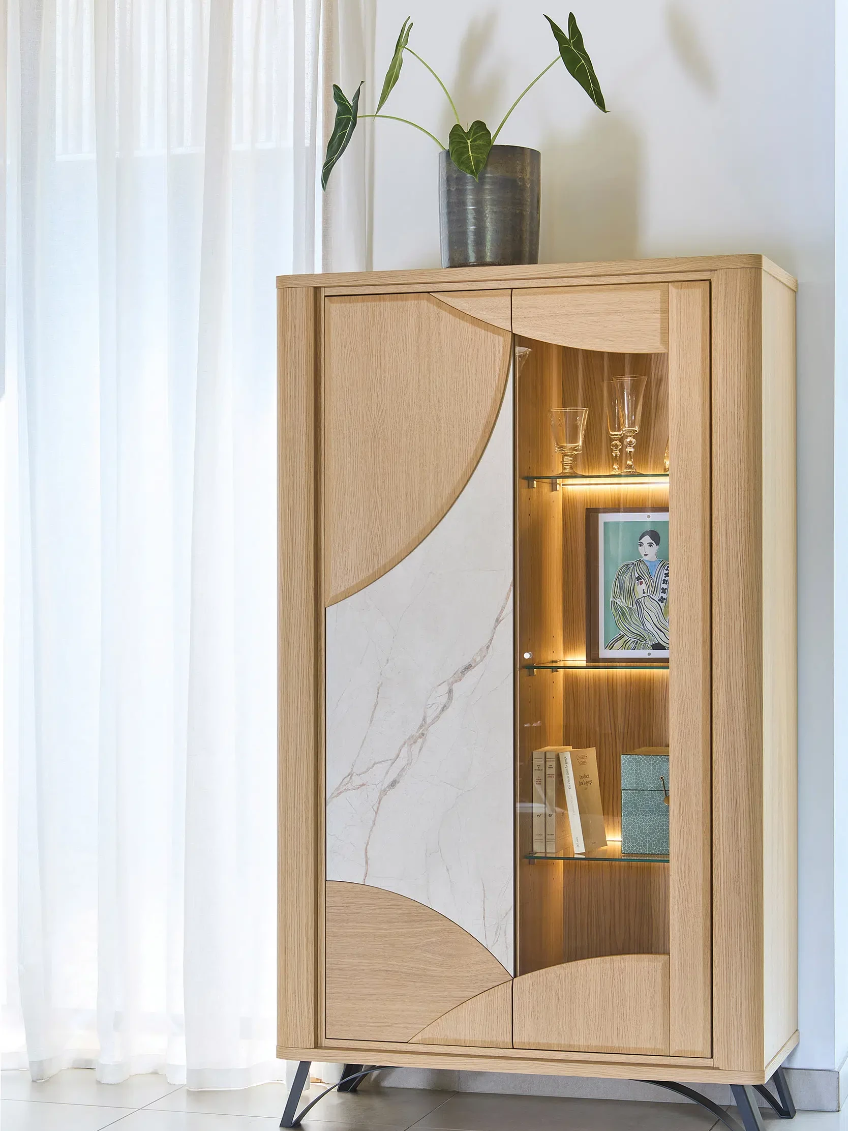 Alliez fonctionnalité et élégance avec la vitrine RIVIERA, pensée pour sublimer votre intérieur et vos plus beaux objets.