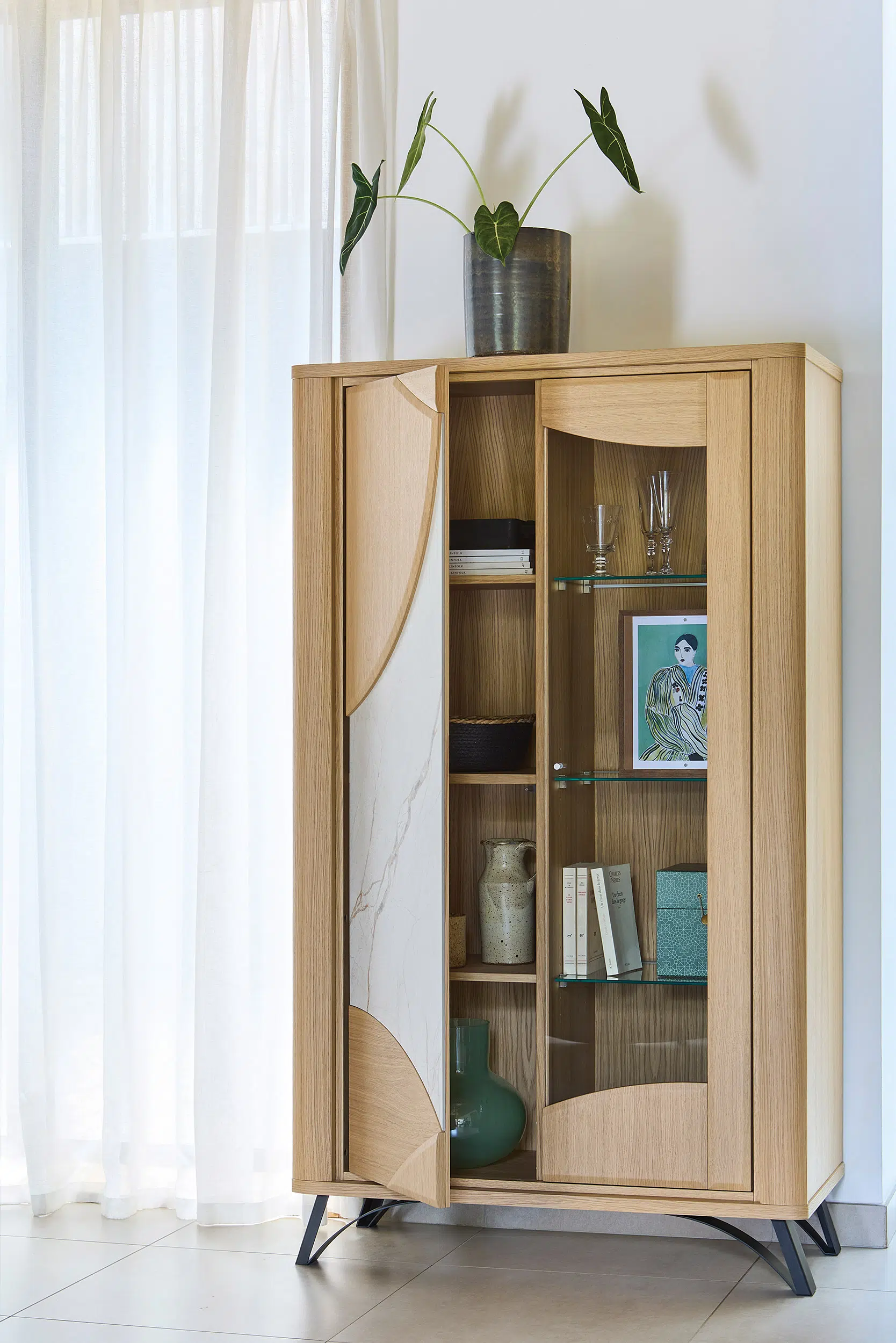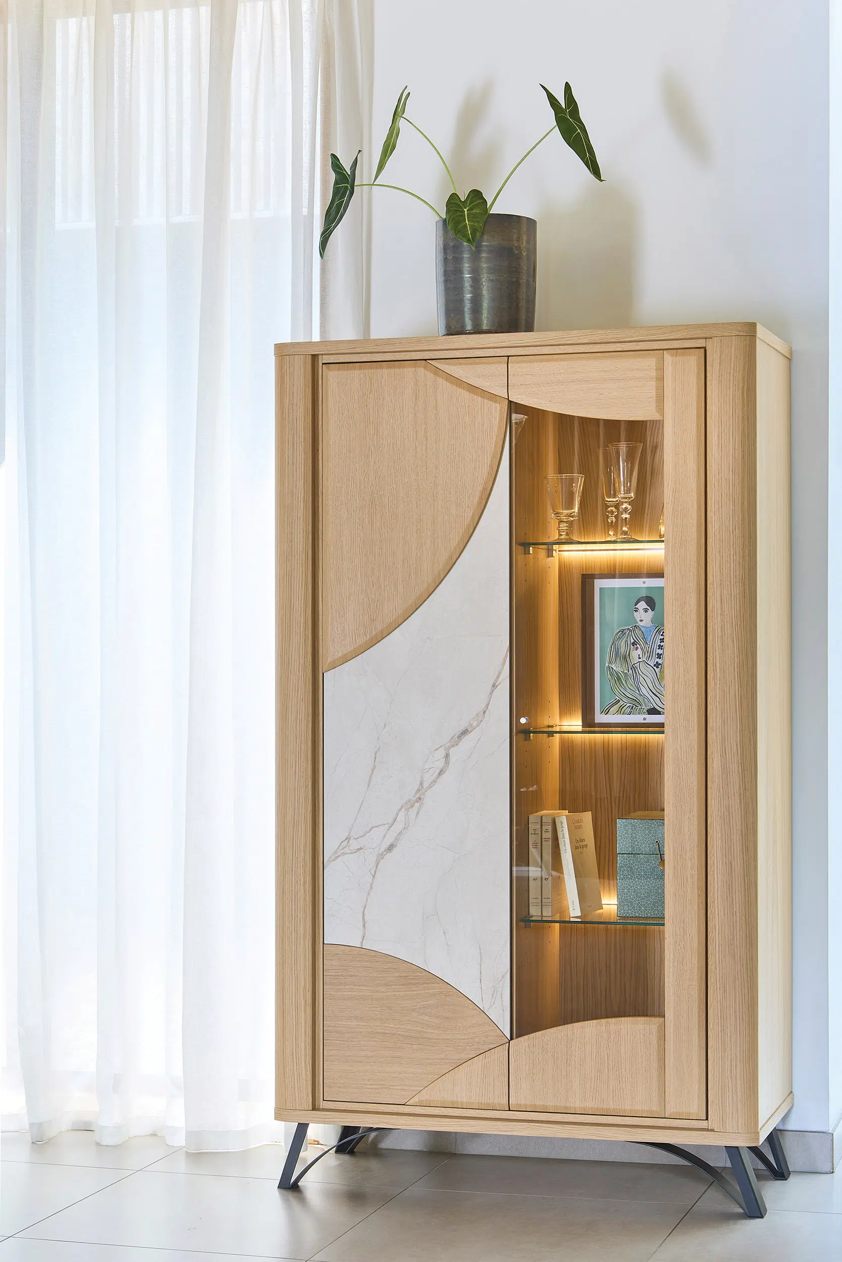 Alliez fonctionnalité et élégance avec la vitrine RIVIERA, pensée pour sublimer votre intérieur et vos plus beaux objets.